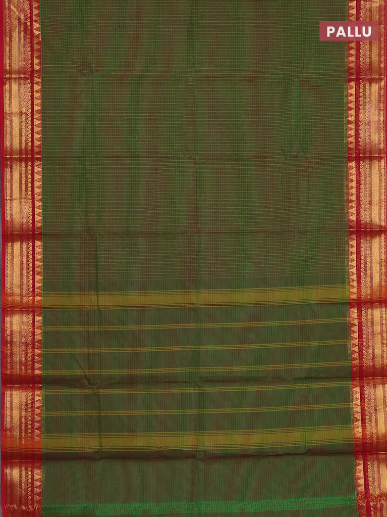Chettinad cotton saree green and maroon with allover checked pattern and temple disign zari woven border