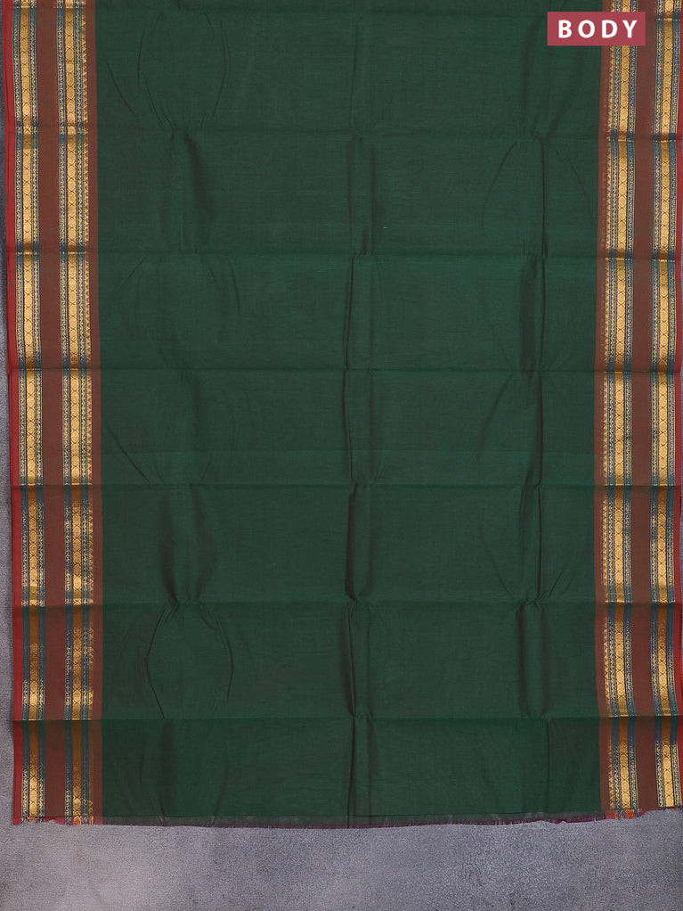 Chettinad cotton saree green and maroon with thread woven buttas and zari woven border