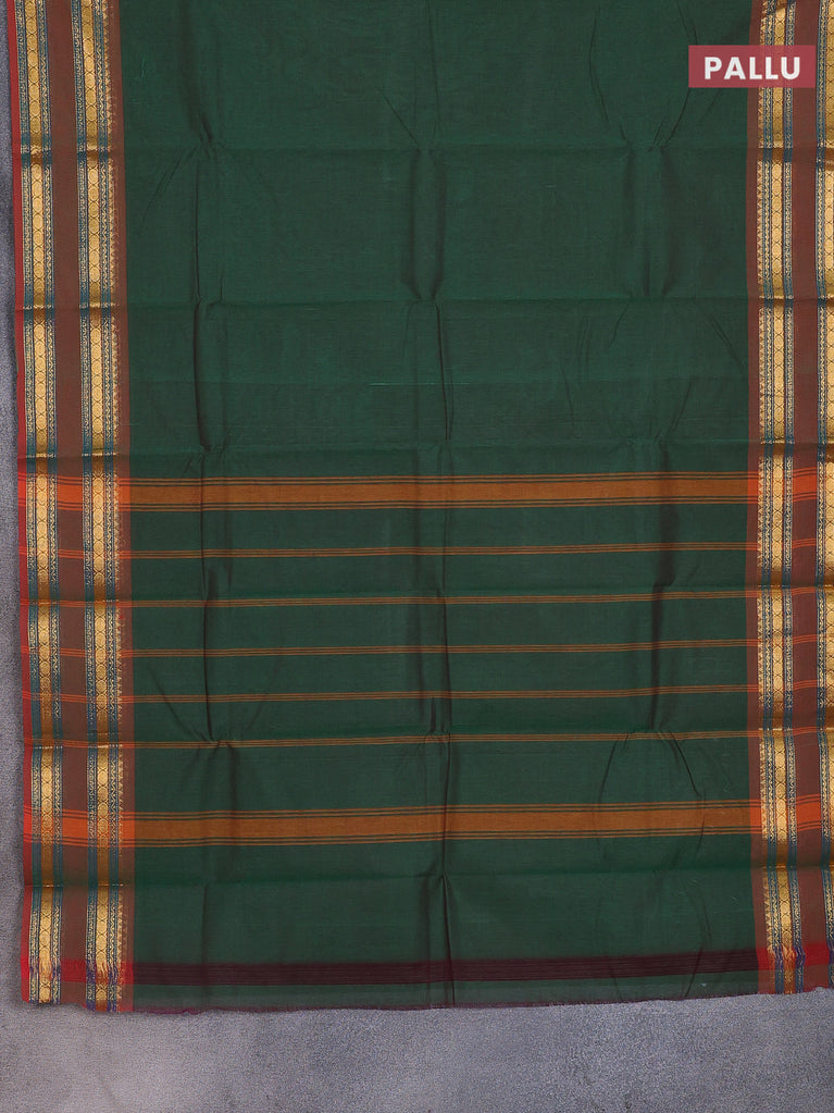 Chettinad cotton saree kumkum red and sap green with thread woven buttas and thread woven border