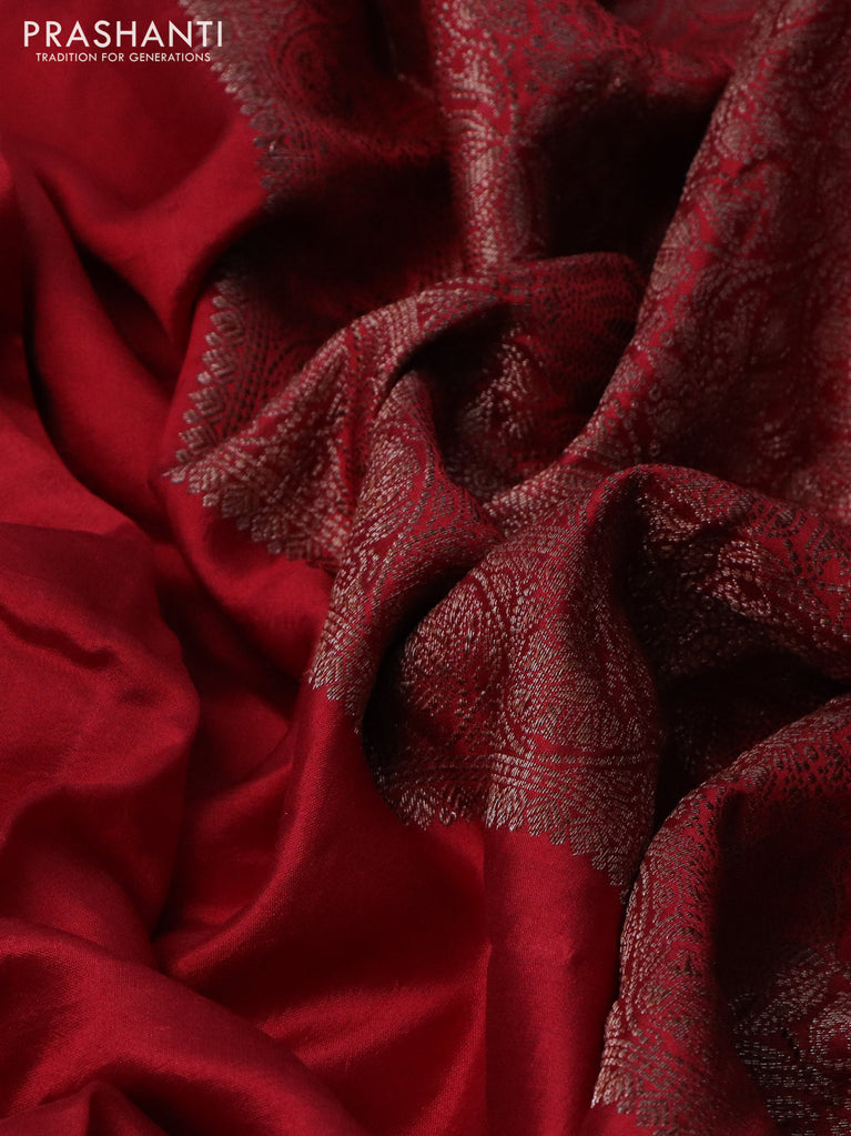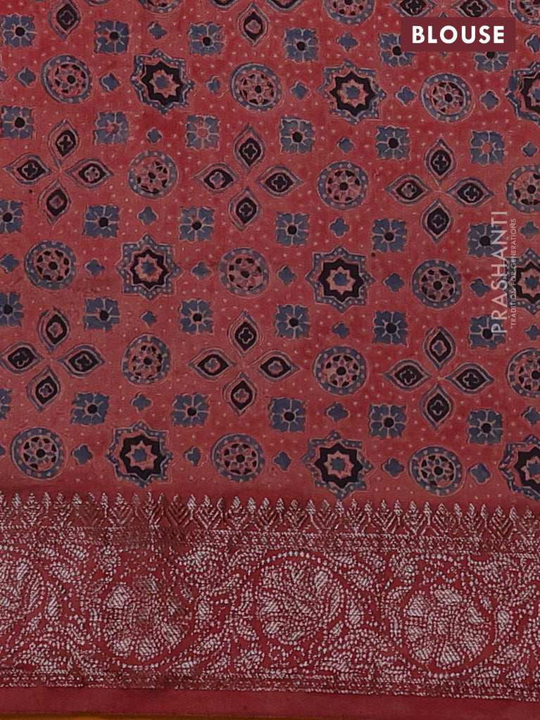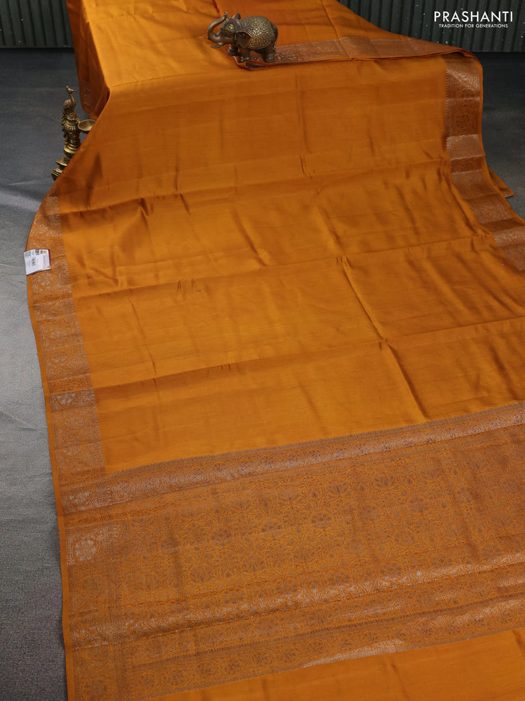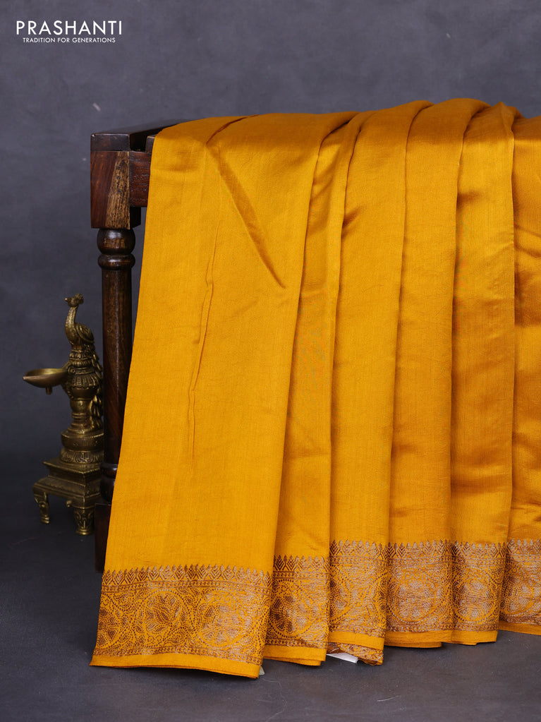 Chiniya silk saree mustard yellow and maroon shade with plain body and woven border