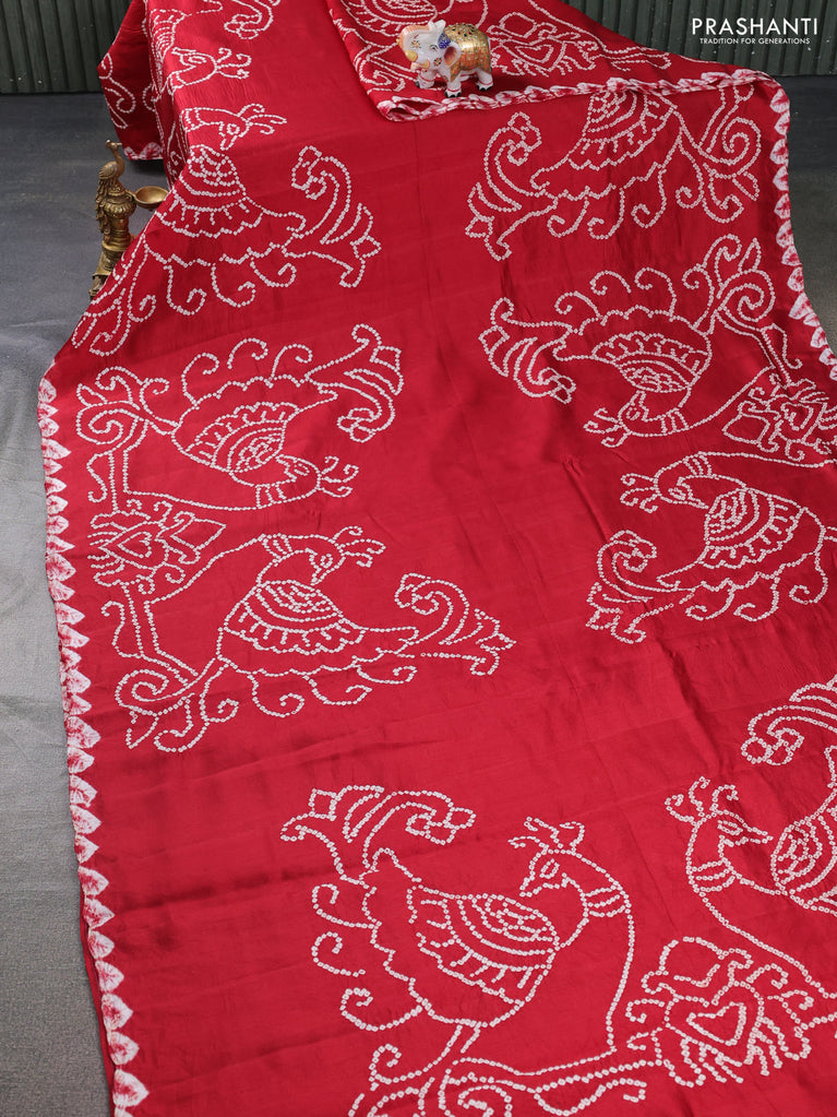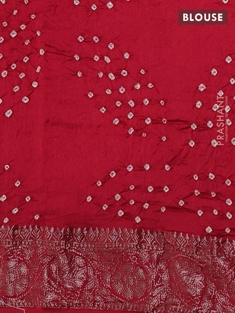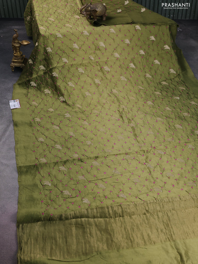 Chiniya silk saree mehendi green with allover zari buttas & bandhini prints in borderless style
