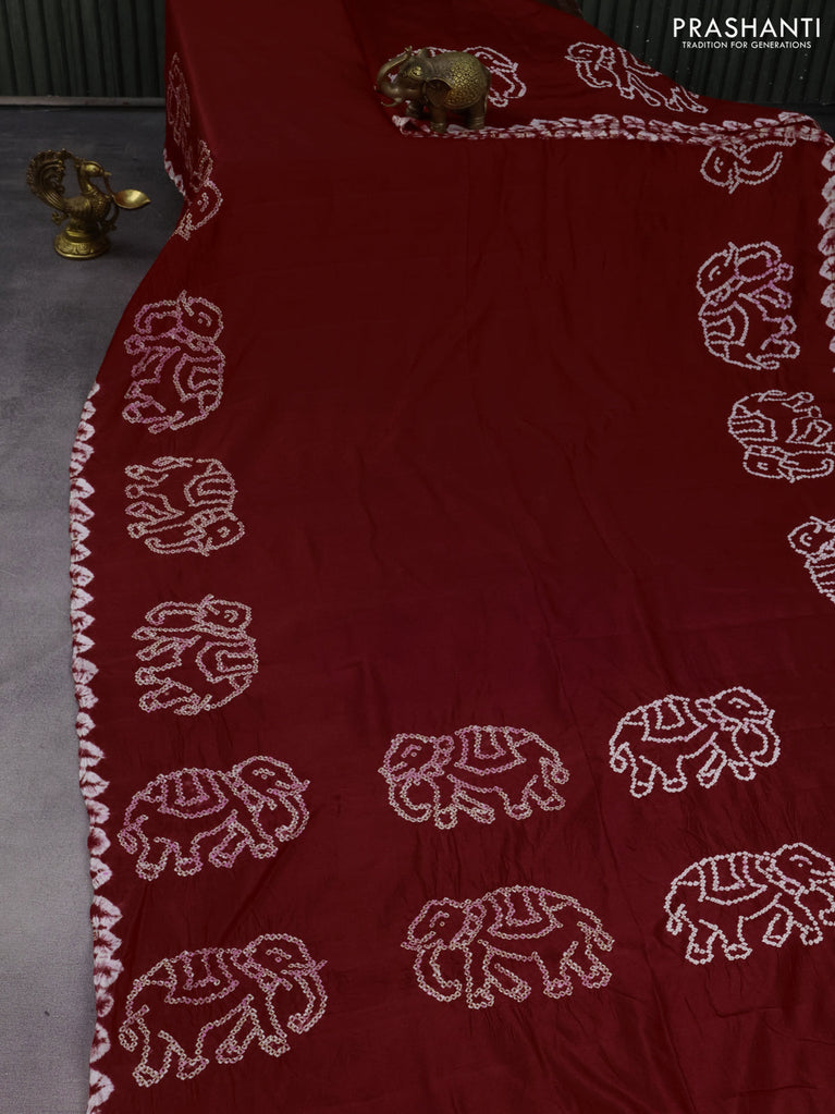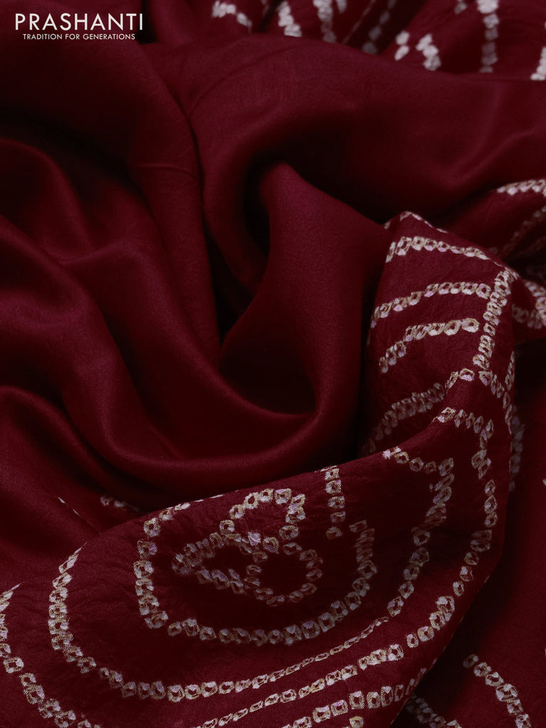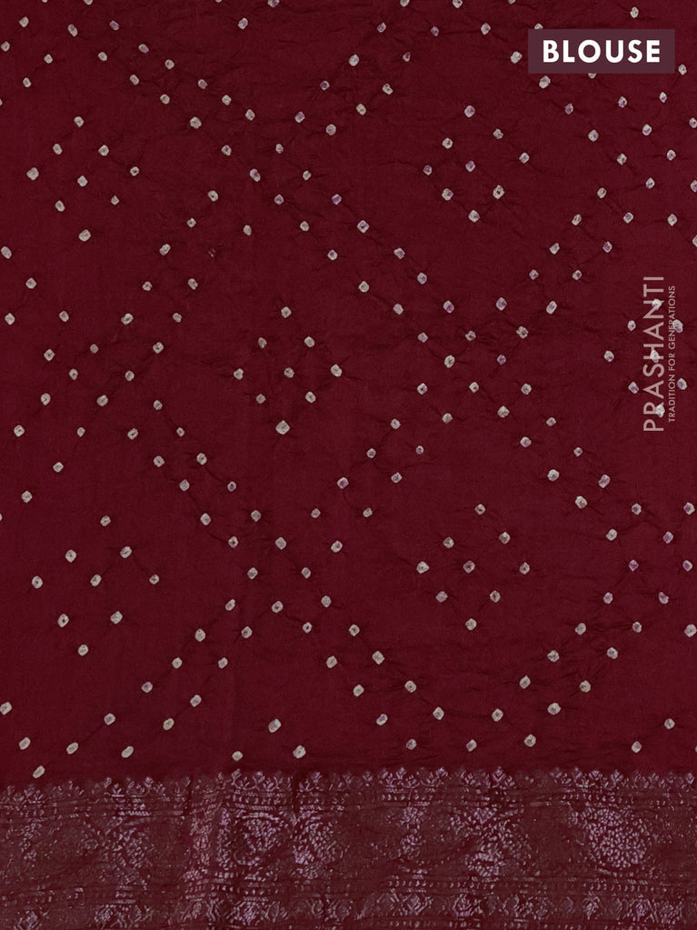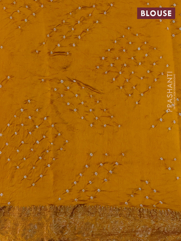 Chiniya silk saree mustard yellow and maroon with allover zari buttas & bandhini prints and zari woven border