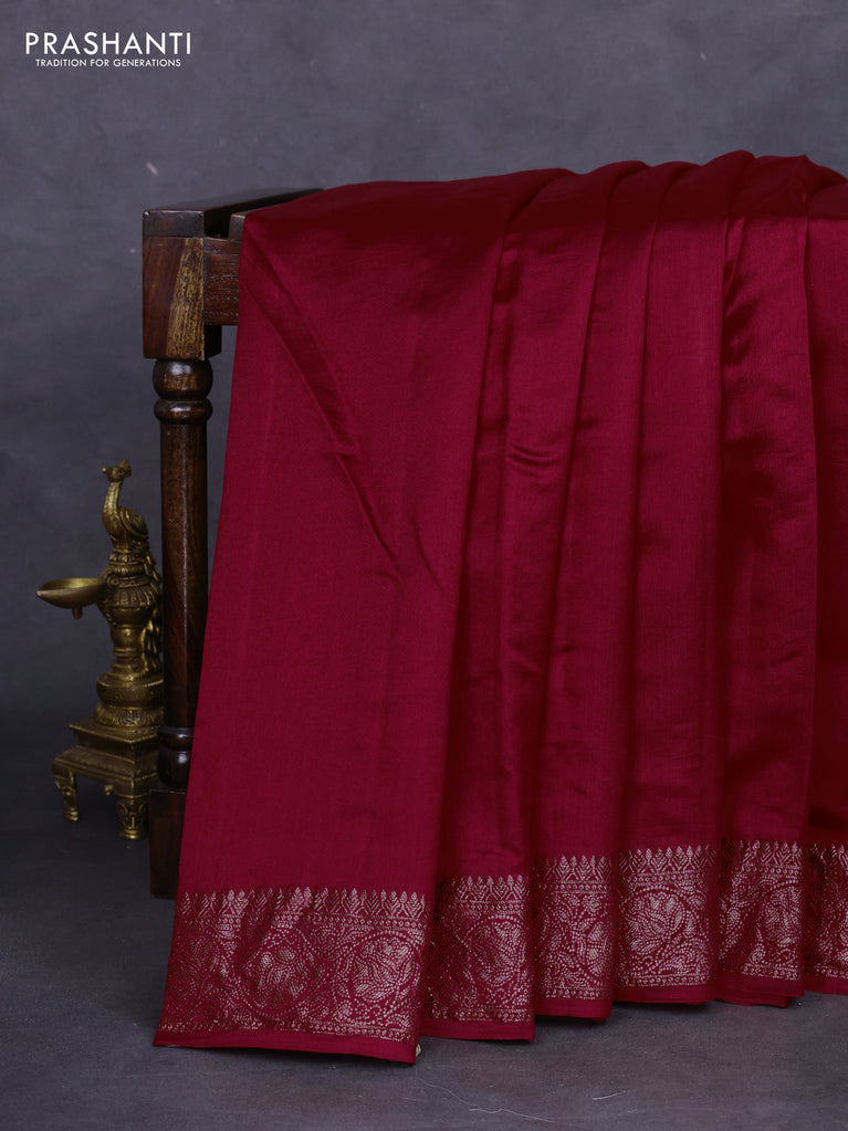 Chiniya silk saree mustard yellow and maroon with plain body and woven border