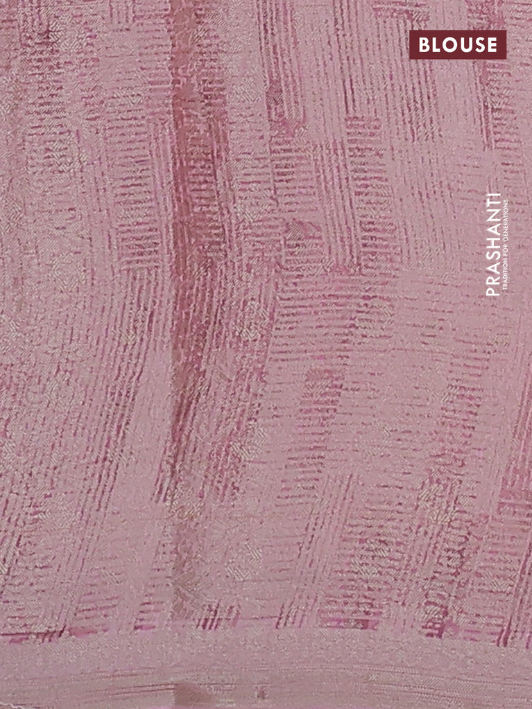 Chiniya silk saree mild peach pink with allover silver zari buttas & digital prints and zari woven border