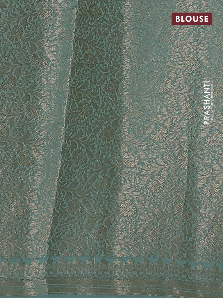 Chiniya silk saree mustard yellow and teal shade with woven buttas & digital prints and zari woven border