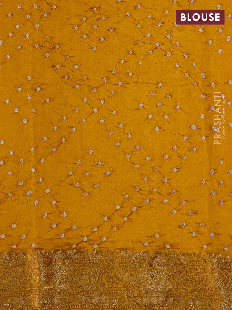 Chiniya silk saree pink and mustard yellow with allover zari buttas & bandhini prints in borderless style