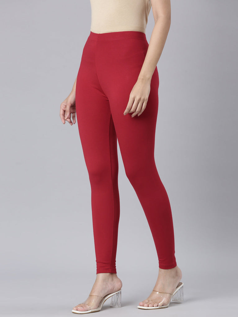 Go the ethnic way with our Solid Dark Red Ankle Length Leggings. Made from Cotton & Elastane, it has a elasticised waistband, slim fit & is of ankle length.
