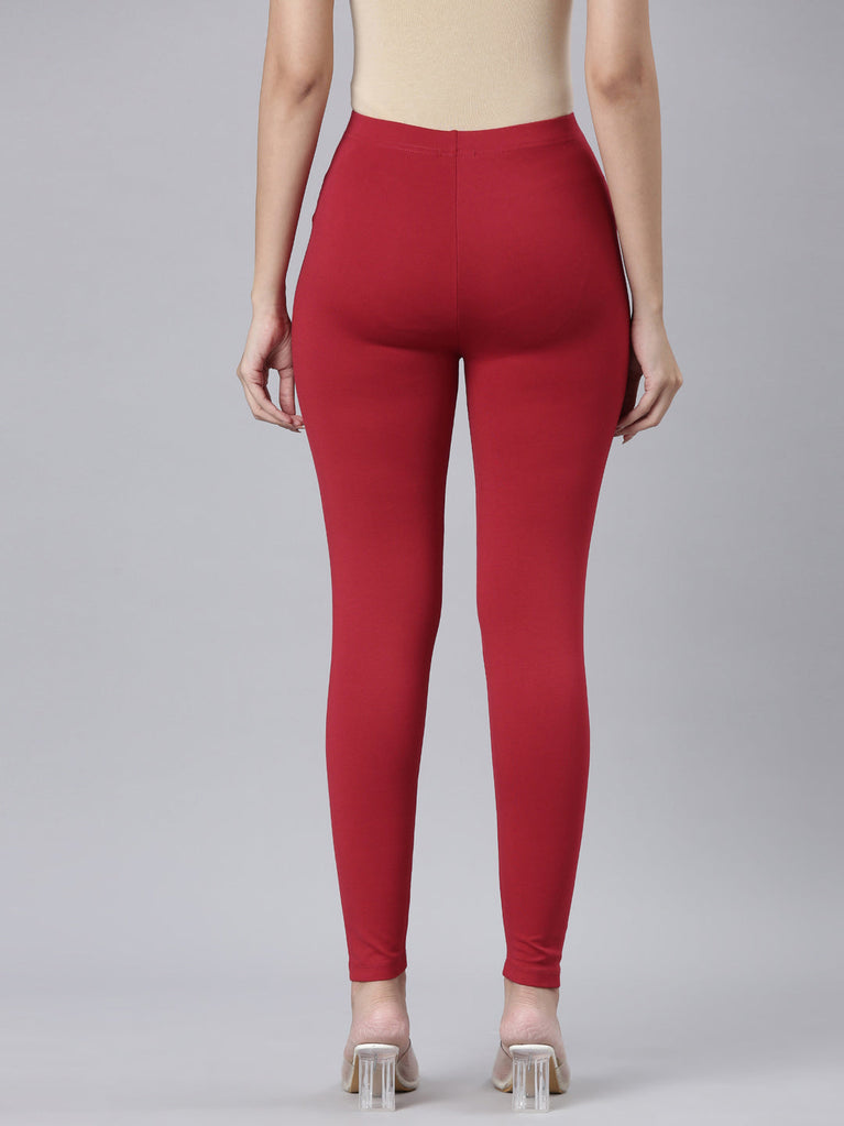 Complete any look, be it traditional or western with these Solid Dark Red Leggings. Made from cotton & elastane, it has a elasticised waistband & has a slim fit.