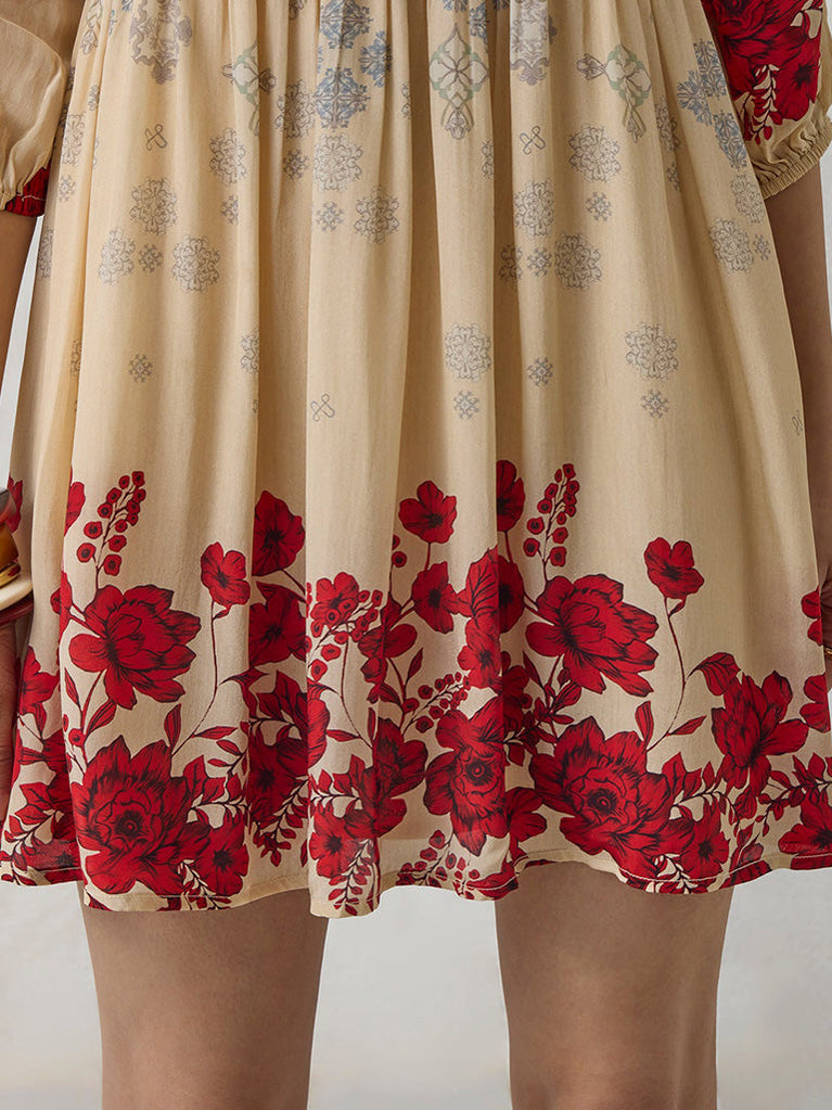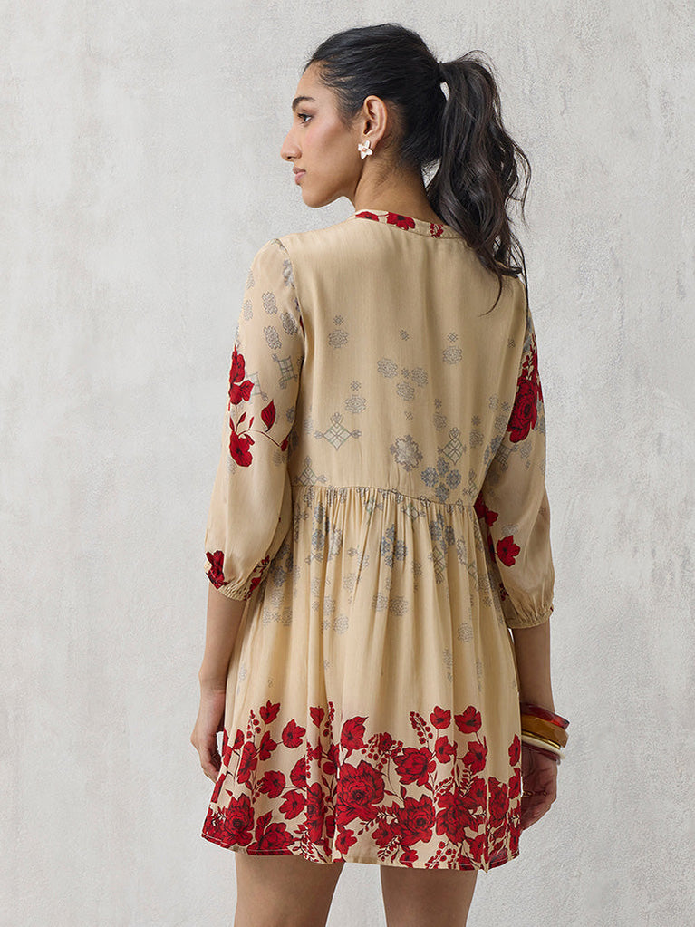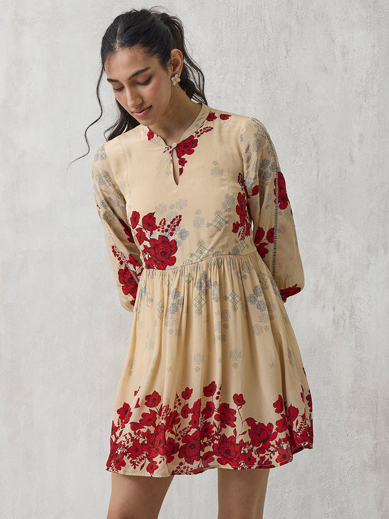 Floral Beige Mini Dress