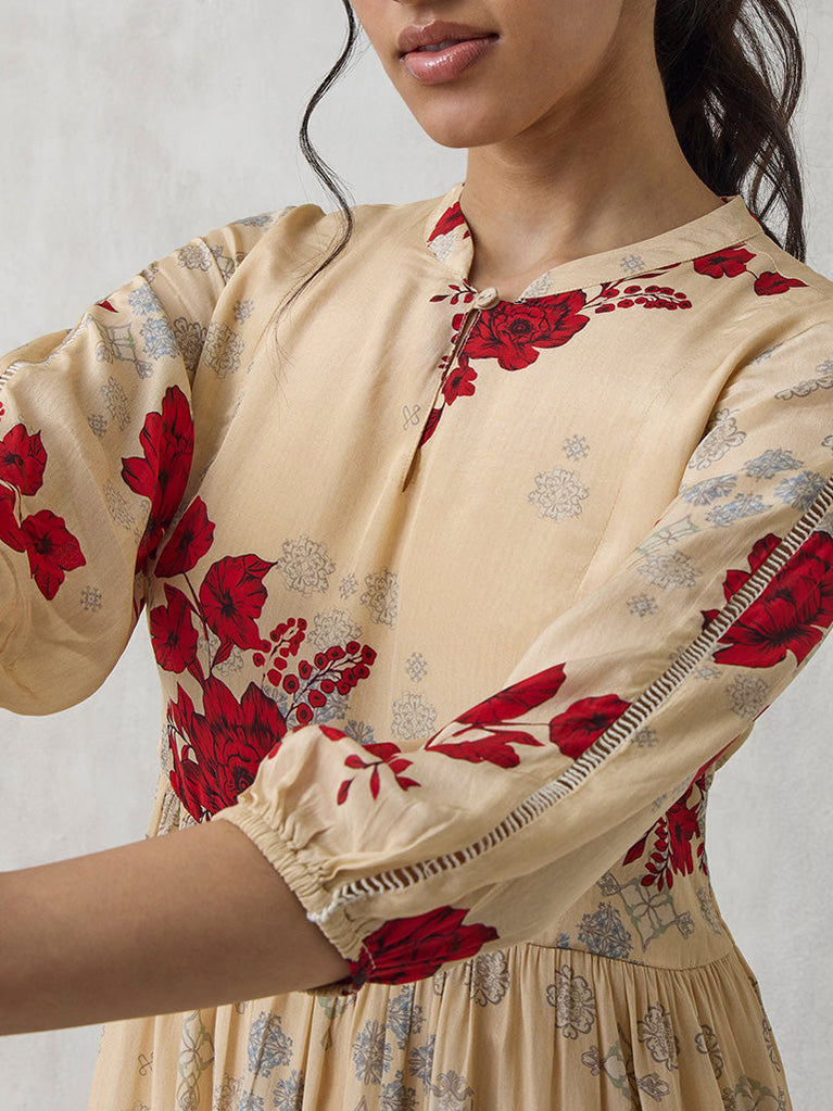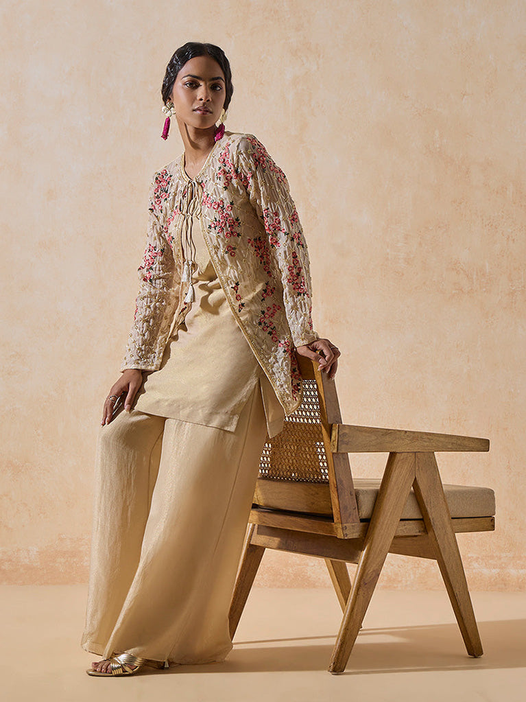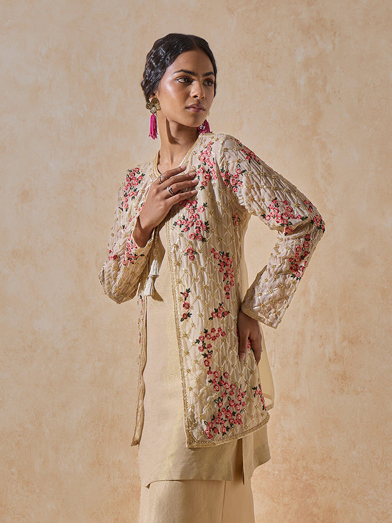 Floral Beige Embroidered Kurta