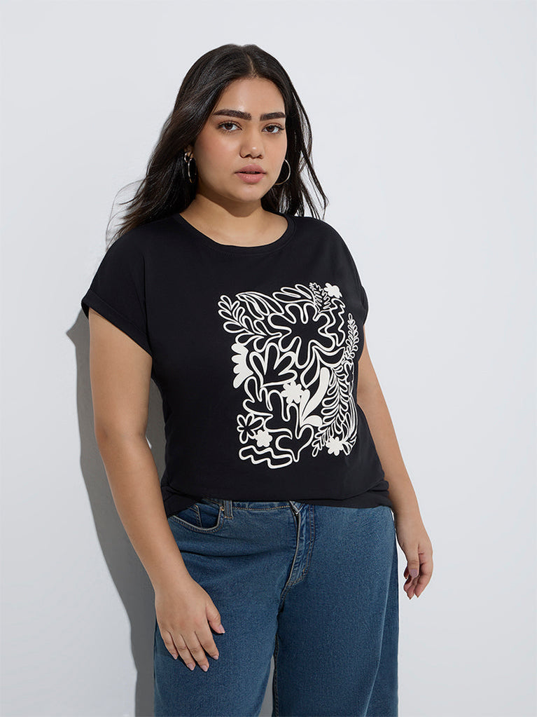 This black t-shirt from Gia is crafted from pure cotton to ensure lasting comfort through the day. Designed with a round neck and short sleeves, it features printed detailing that adds a stylish touch to its minimalist silhouette.