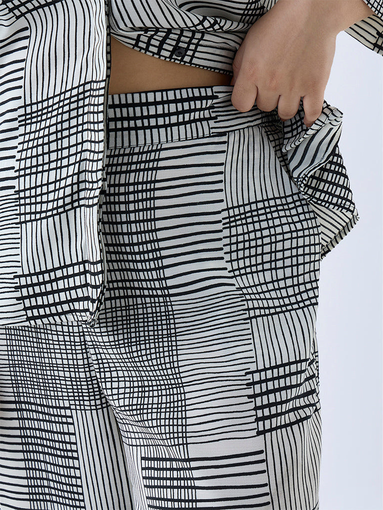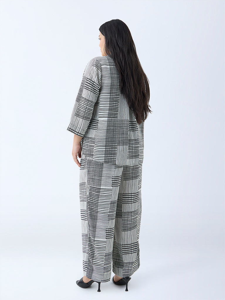 This black shirt from Gia stands out with its modern take on checkered prints, offering a graphic edge to everyday styling. Spun from an ultra-lightweight fabric, it features a shirt collar, a concealed button placket, and three-quarter sleeves for a streamlined finish.