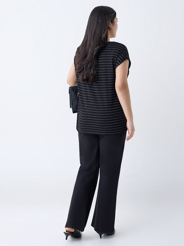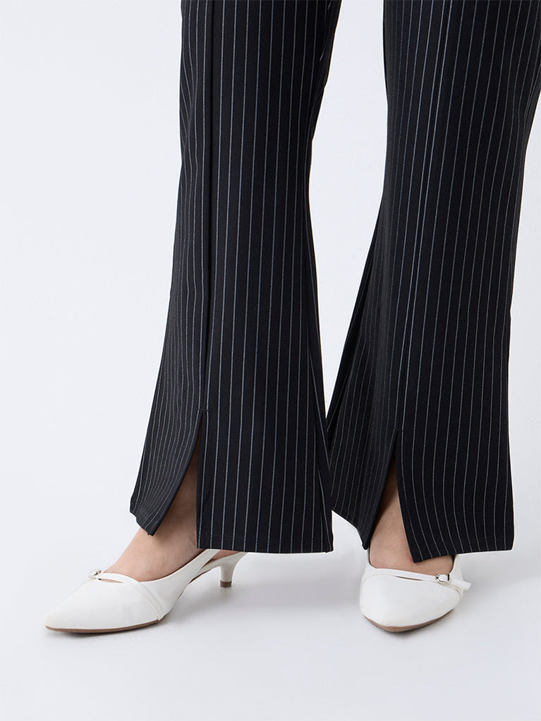 Gia Black Pinstriped Bootcut High-Rise Trousers