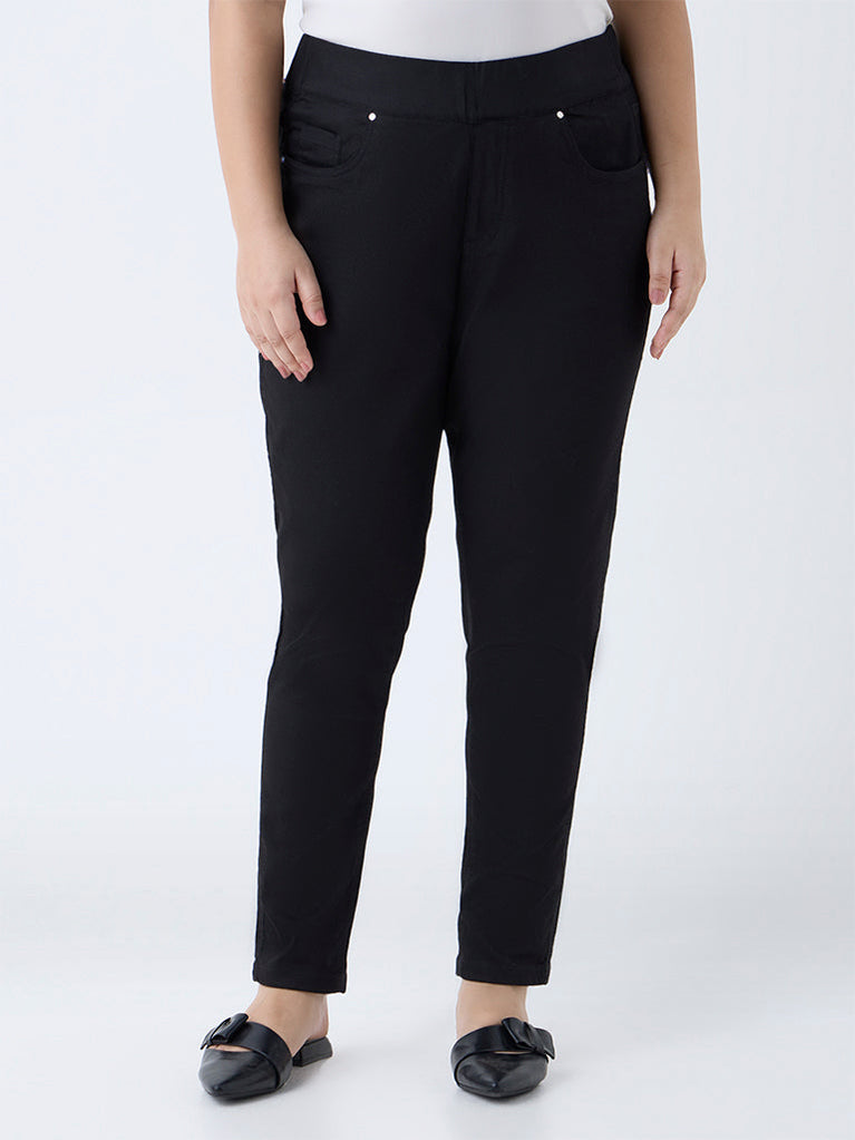 These black jeggings from Gia are designed in a solid profile for effortless styling. Crafted from a soft cotton-blend material, they offer a flattering fit that moves with you. The smooth elastic waistband ensures all-day comfort, while multiple pockets add a practical touch.