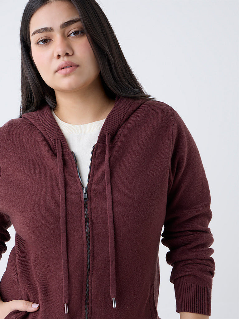 Add a cozy yet stylish layer to your wardrobe with this brown knit-textured jacket from Gia. Designed with a sleek zipper front, it features full sleeves and an attached hood with adjustable drawstrings for versatile styling. Finished with practical side pockets, it offers the perfect blend of comfort and contemporary appeal.