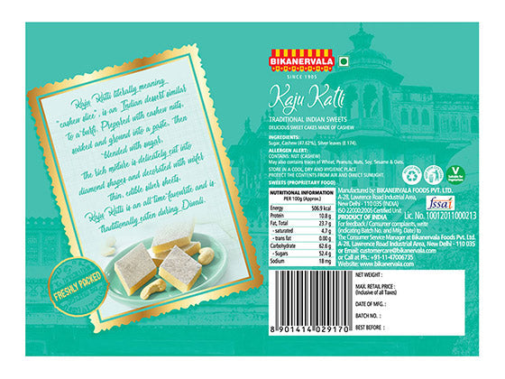 G Pulla Reddy's Kaju Katli is a premium quality Indian sweet made with pure cashews, sugar, and ghee. Our traditional recipe and careful selection of ingredients create a mouth-watering delicacy that is loved by people of all ages. Our Kaju Katli is free from any artificial preservatives, additives or colors, making it a healthy and guilt-free indulgence. We take great care in roasting the cashews to perfection to bring out their rich and natural flavor. Our product is packaged with utmost care to preserve its freshness and taste. Whether for gifting, celebrations, or as a sweet treat for yourself, our Kaju Katli is perfect for any occasion. At G Pulla Reddy, we are committed to providing our customers with the highest quality products and exceptional customer service. Our Kaju Katli captures the essence of traditional Indian sweets, delivering the perfect blend of taste, quality, and authenticity. Try it once and you'll be hooked on its delicious taste!