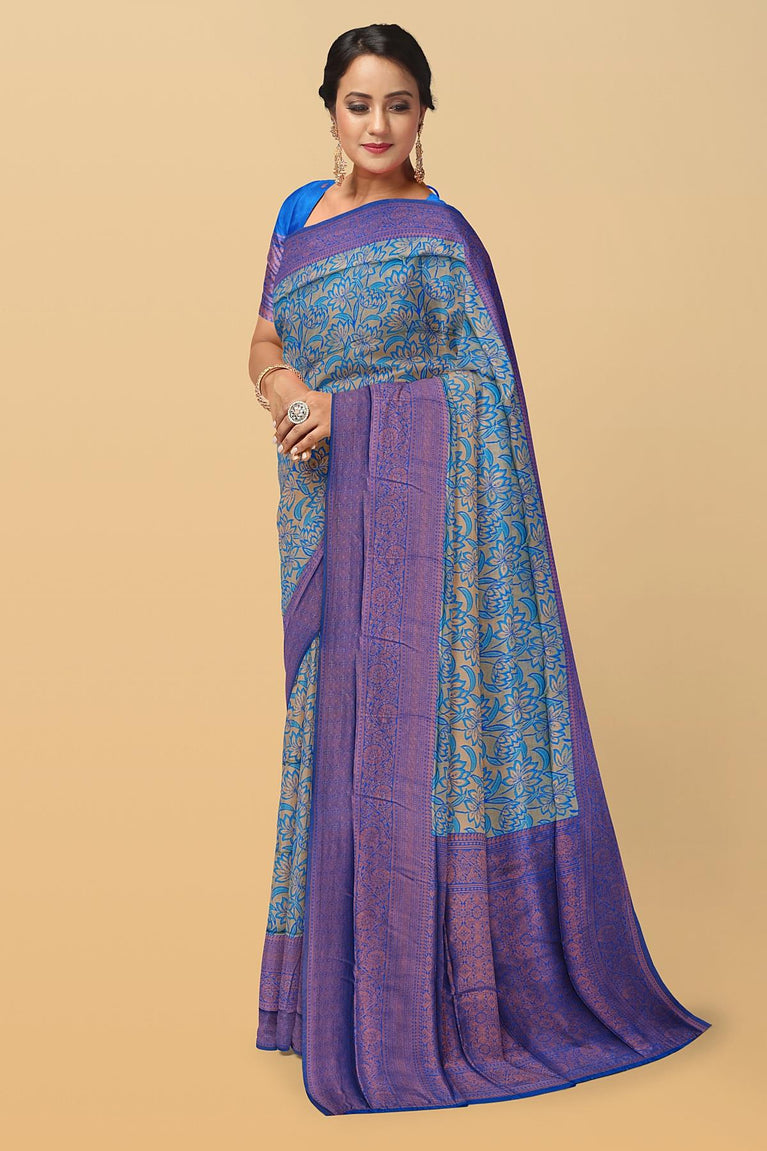 LIGHT BLUE and ROYAL BLUE FLORALS SILK Saree with FANCY