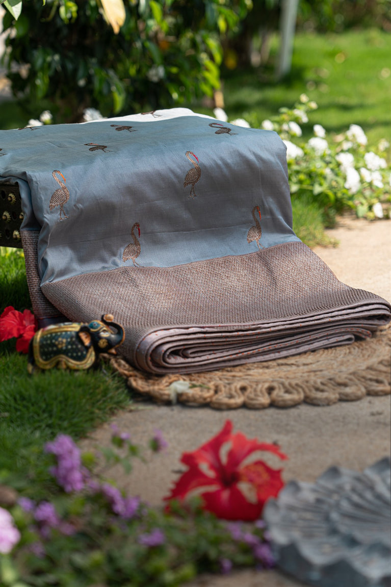 Mandir Grey & Navy Blue Banarasi Jaal Saree