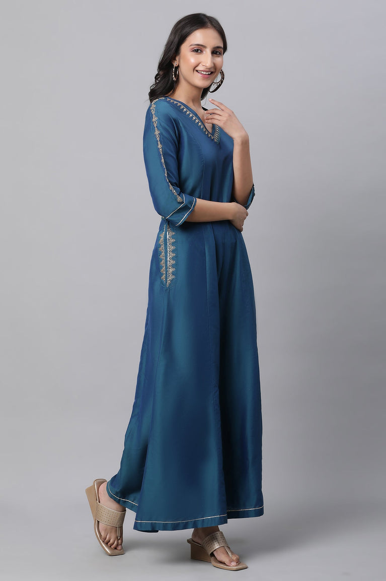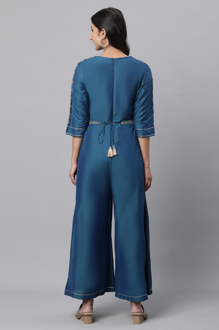 Blue Embroidered Ethnic Jumpsuit with Belt