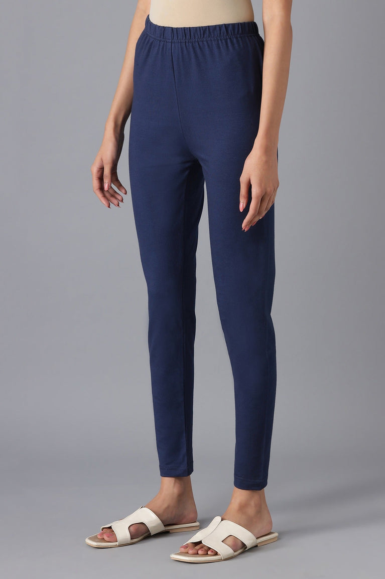 Blue Skin Fit Solid Churidar In Mid-Rise And Elasticated Waistband.