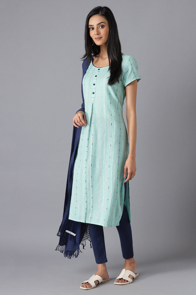 Blue Lurex Straight Kurta and Pants Set