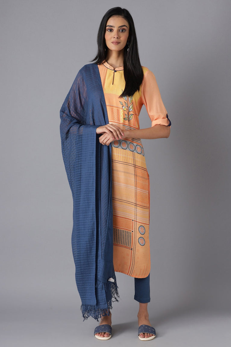 Blue Yarn Dyed Straight Kurta