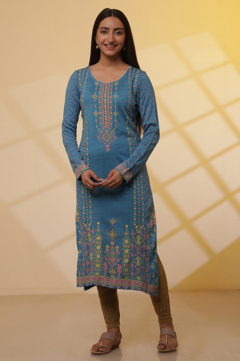 Blue Round Neck Yarn-dyed Winter kurta