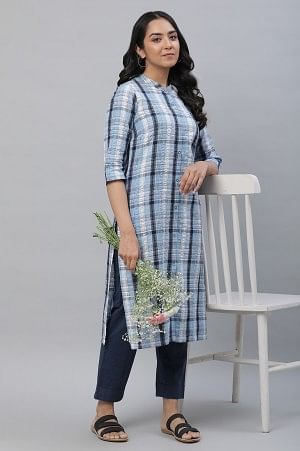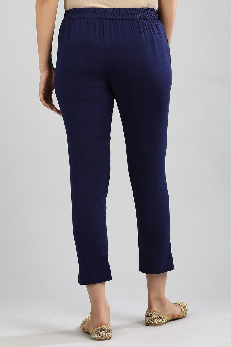Cotton lycra churidar in classic blue colour comes in midrise and has elasticated waistband.