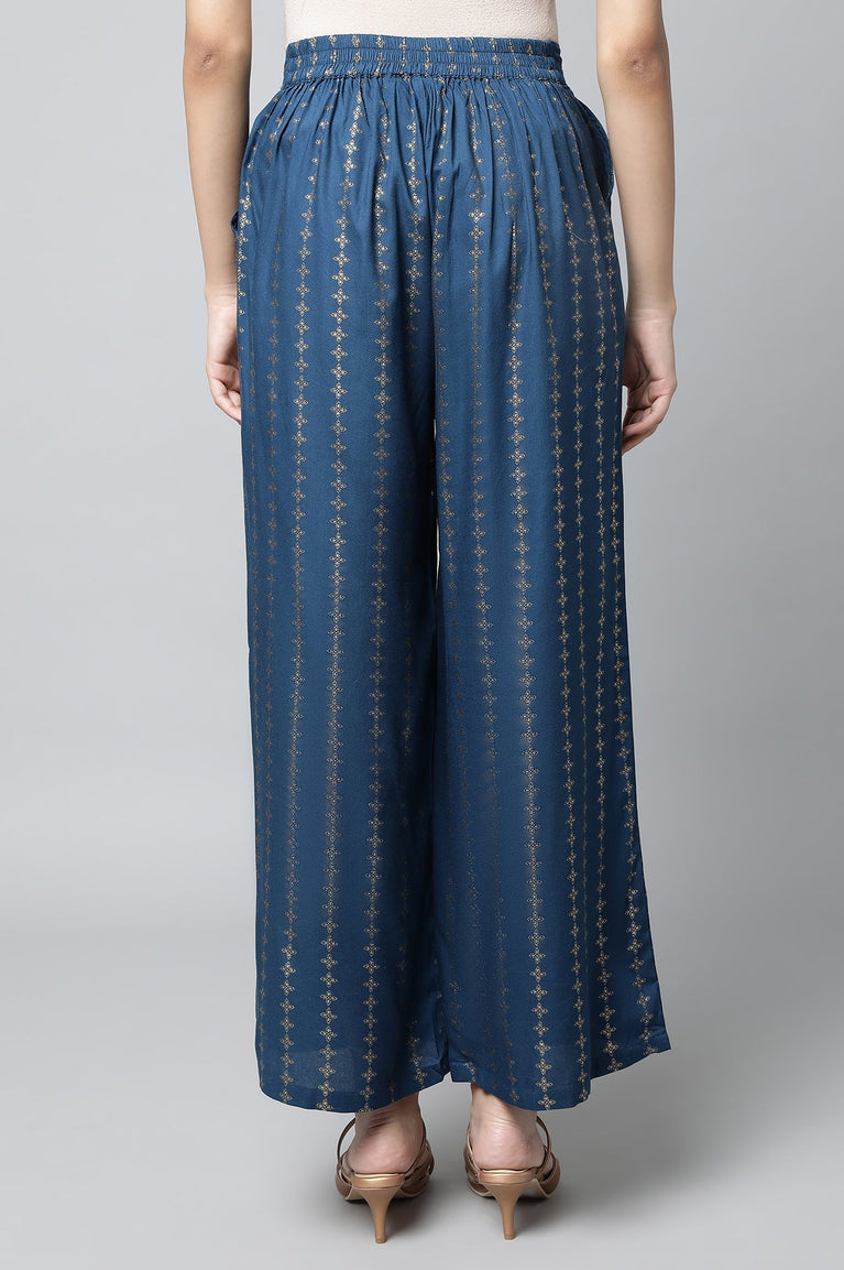 Blue winter palazzo with printed bottom and elasticated waistband.