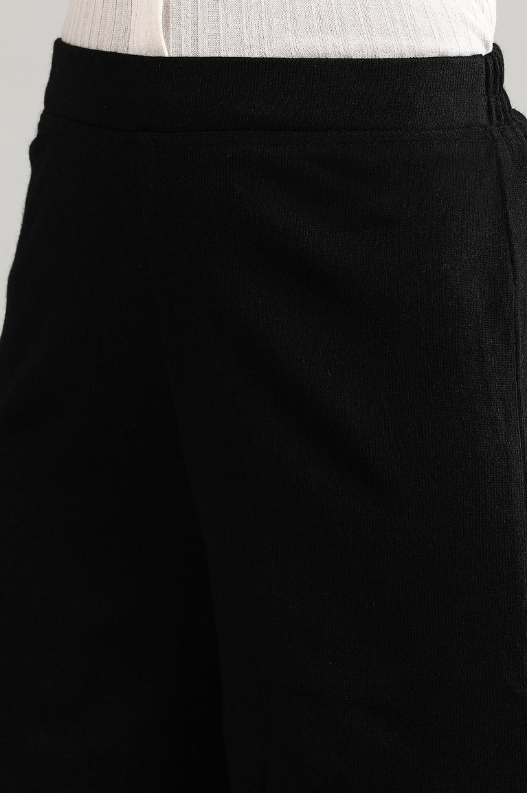 Beige Pointelle Flared Acrylic Palazzo With Elasticated Waist