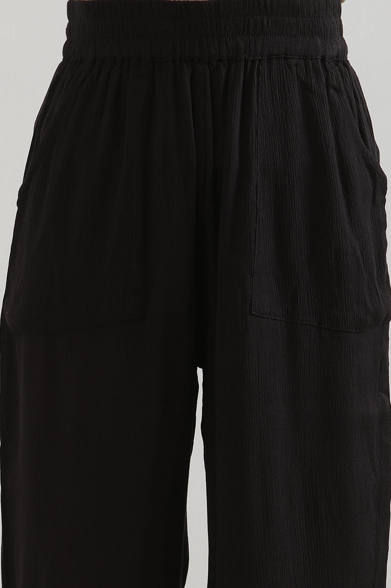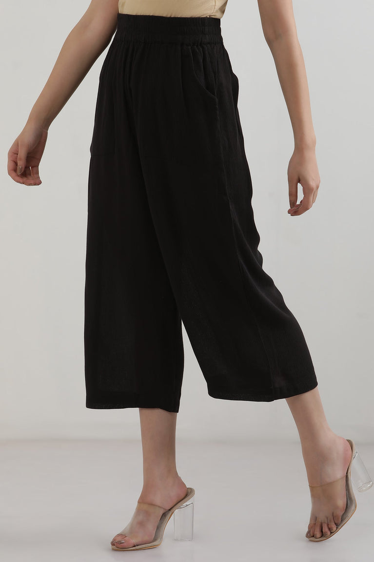 Black Solid Wide Leg Woven Palazzo With Elasticated Waistband