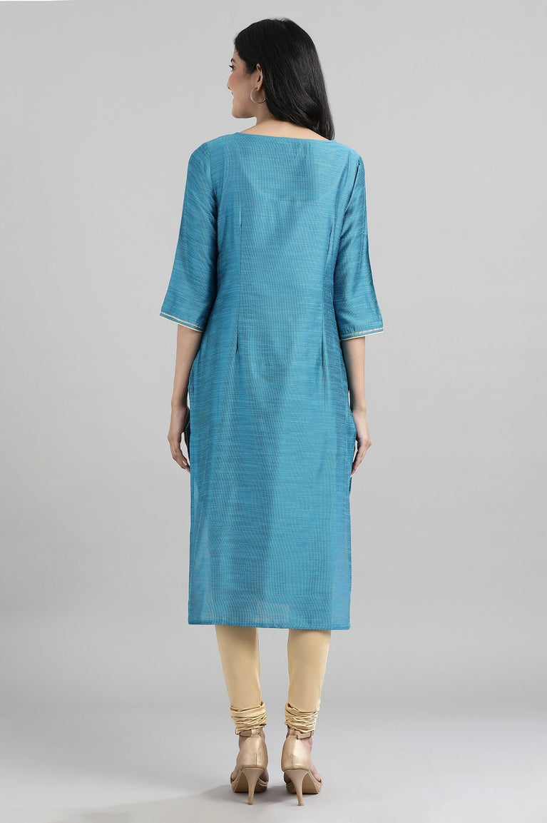 Blue Straight Casual kurta in Round Neck