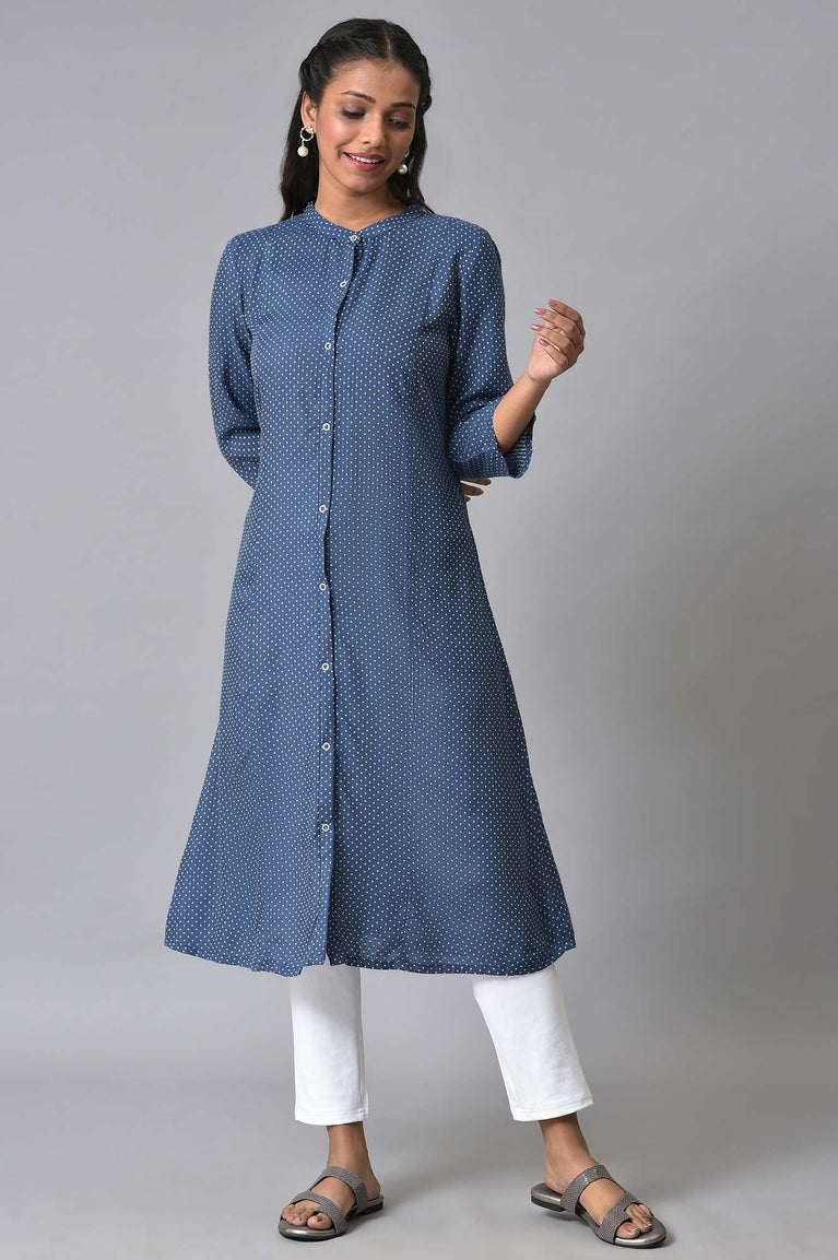 For Your Comfy And Stylish Summer Look, We Have Got You This Pretty And Elegant Blue Geometric Print kurta By Aurelia. The kurta Has Band Collar With Button Placket.