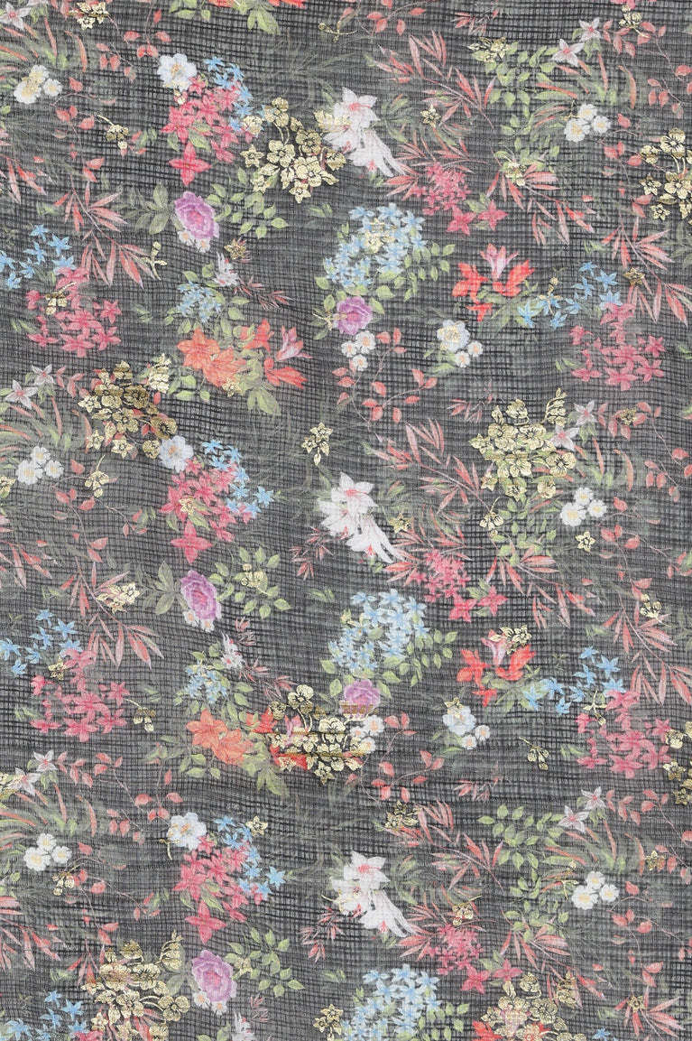 Indulge in sophistication with this stunning 3-piece set, featuring a nyra-cut kurta crafted from luxurious kota heatset fabric adorned with vibrant multi-coloured floral print on a chic black base. Paired elegantly with semi-flare black palazzo. Complete the look with a kota printed tonal drape, adding a touch of finesse that effortlessly combines elegance and charm.