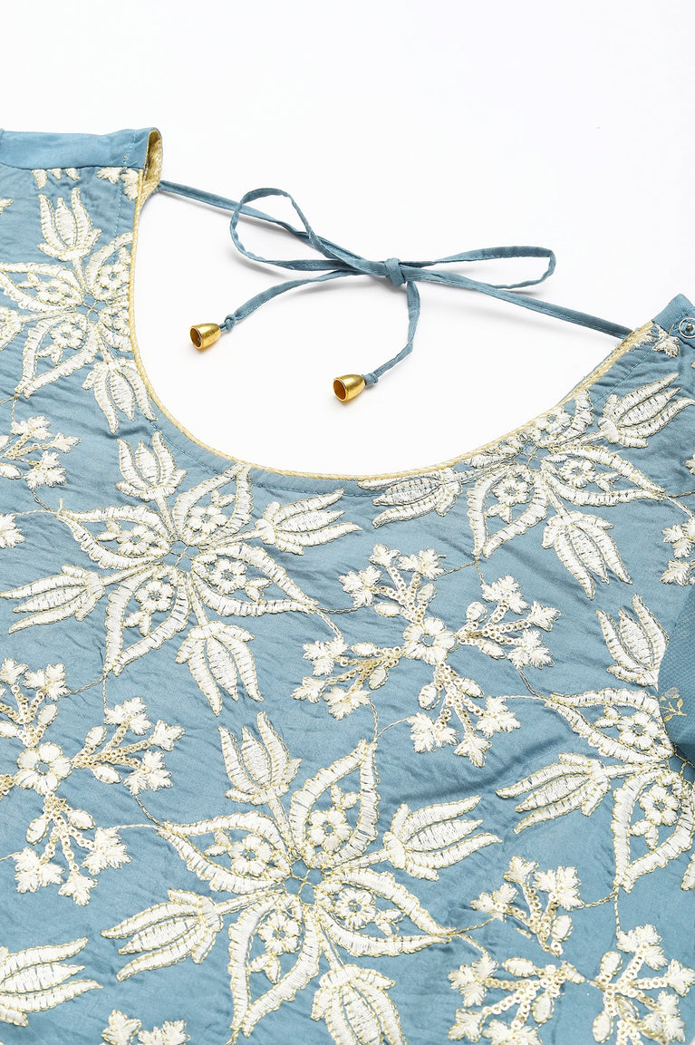 Blue Embroidered Festive Kurta