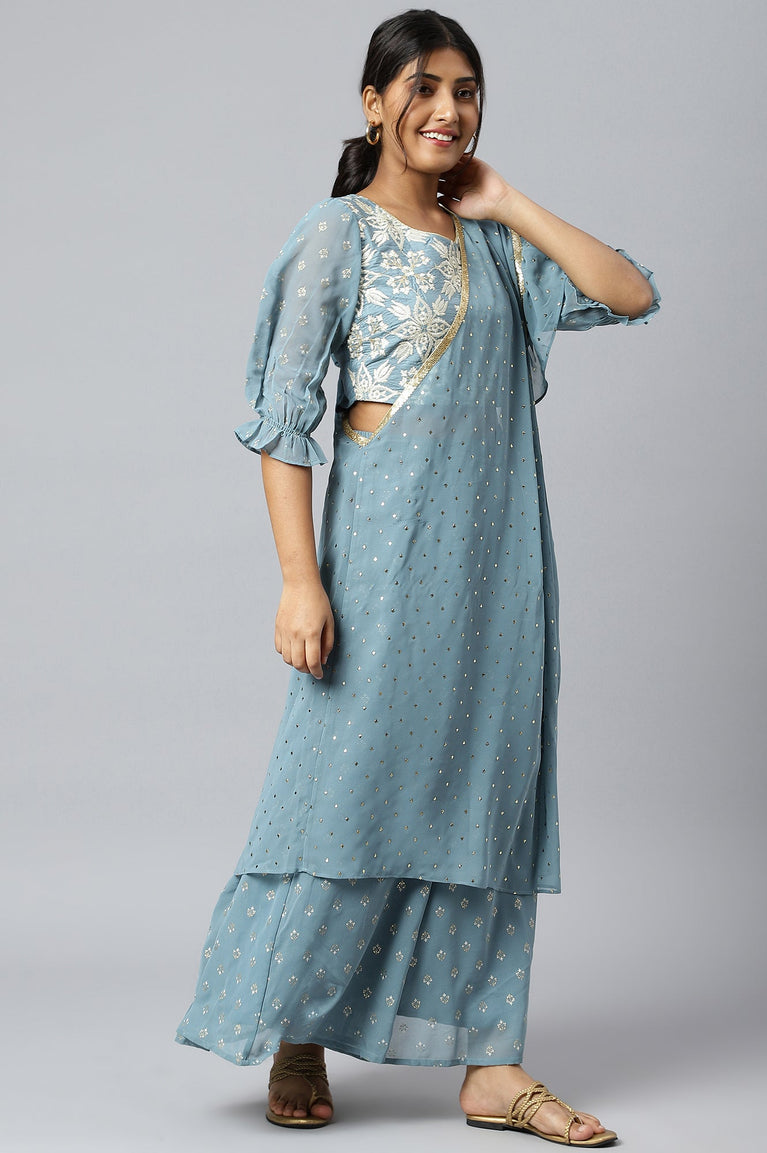 Blue Ethnic Festive kurta and Palazzo Set