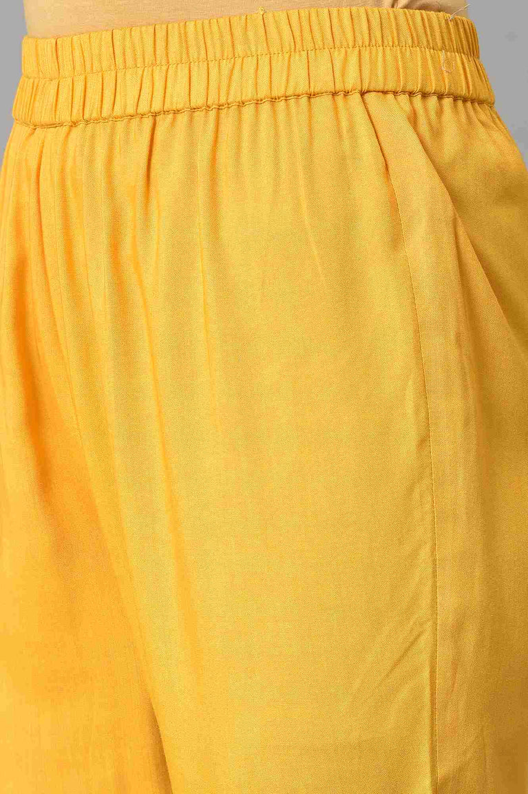 Lift Up Your Casual Look With This Stylish kurta Set. The Set Includes Blue Colour Block Printed Liva kurta In Round Neck And Straight Silhouette. It Is Paired With Green Printed Straight Palazzo Pants.
