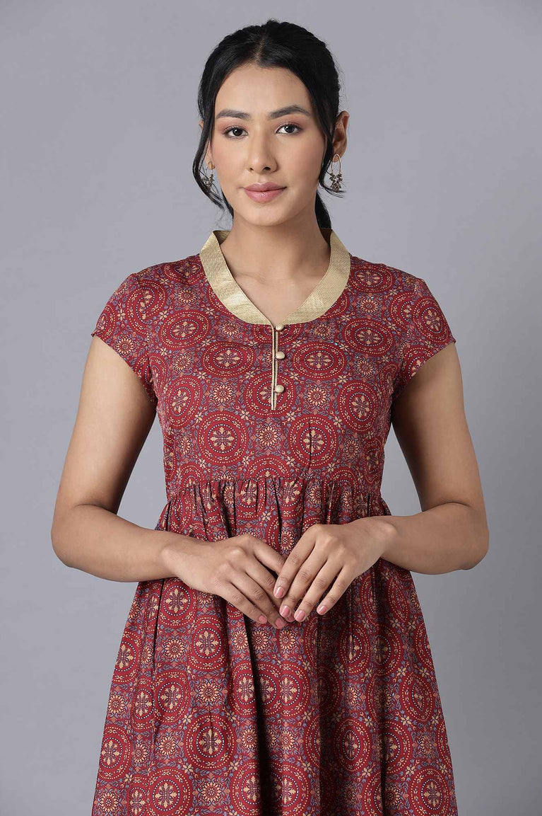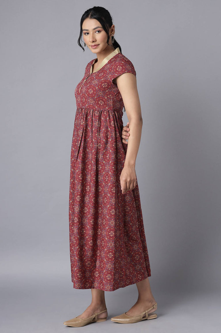 Brick Maroon Ethnic Dress