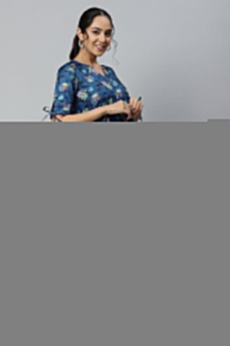Blue Asymmetrical Floral Printed Kurta