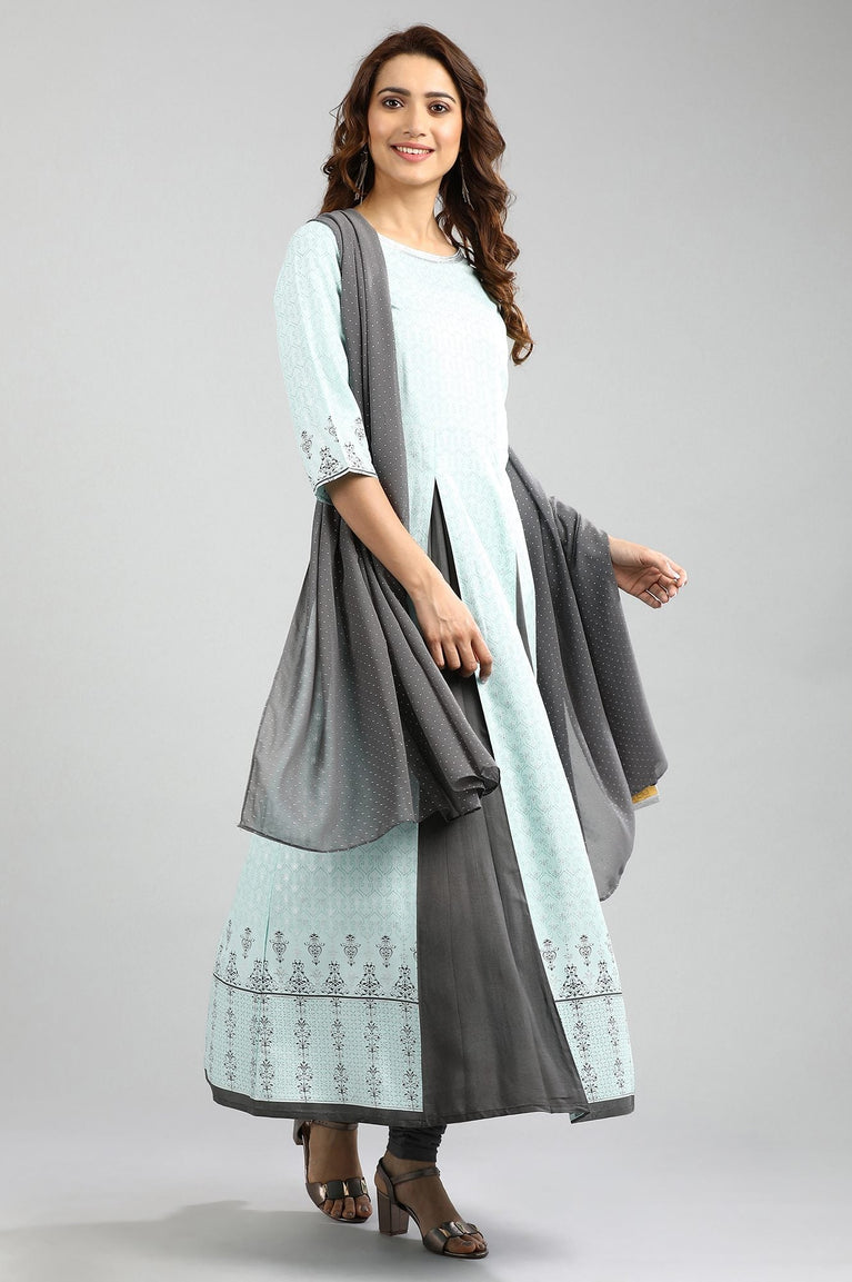 Blue Zari Embroidered Dress And Dupatta
