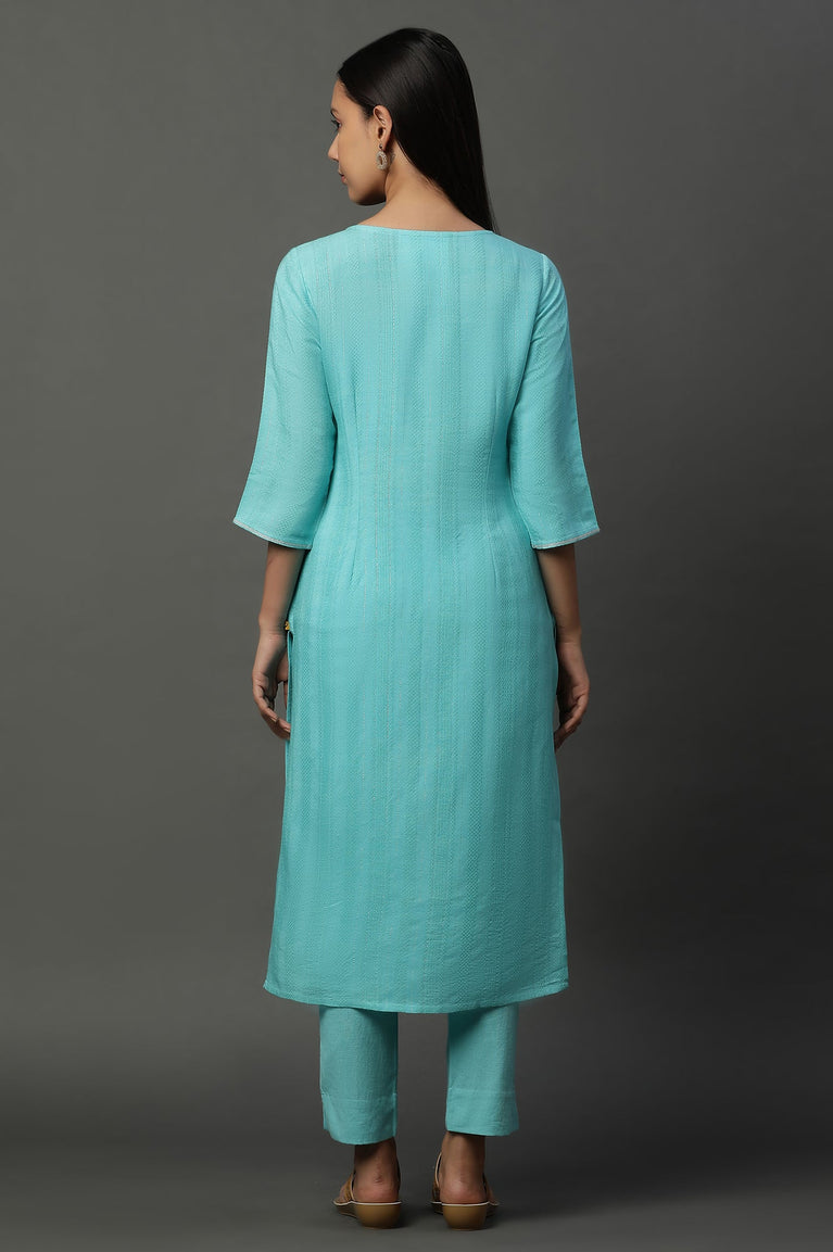 Blue Embellished Kurta and Pants Set