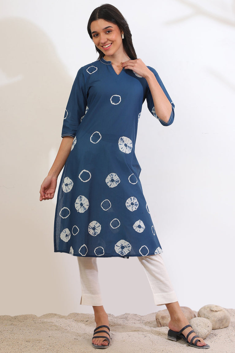 Blue Shibori Printed Straight Pure Cotton Kurta