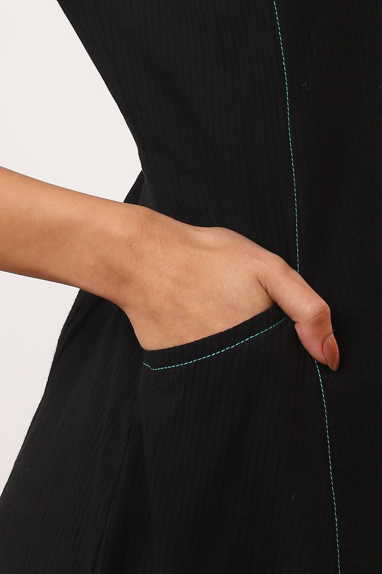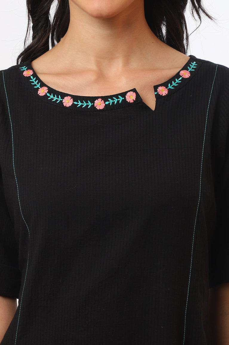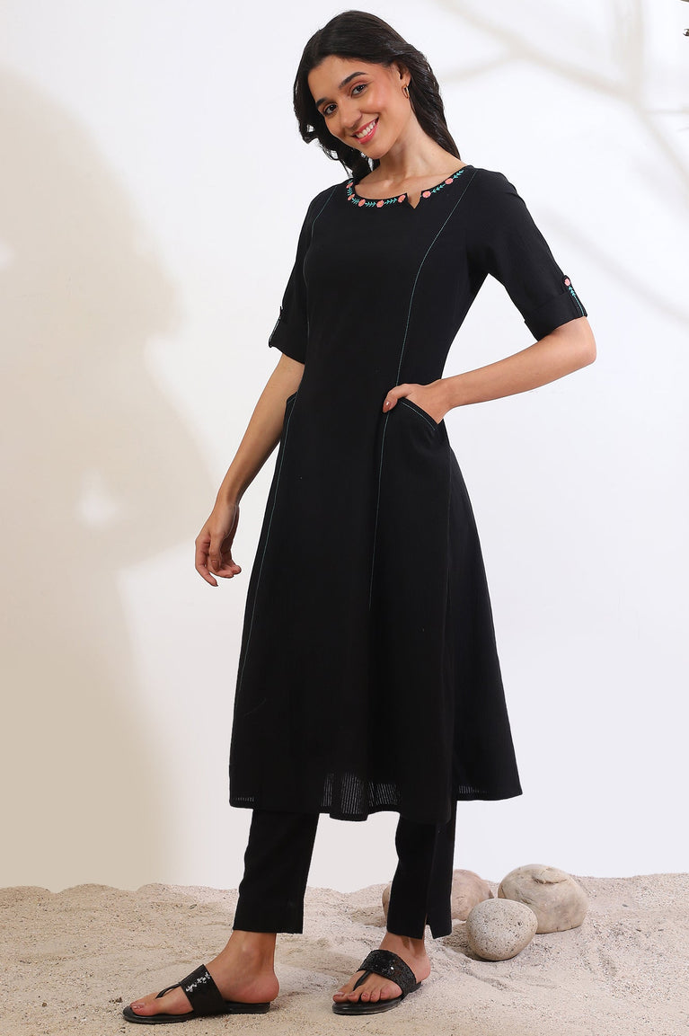 Black Solid Straight Pure Cotton Kurta