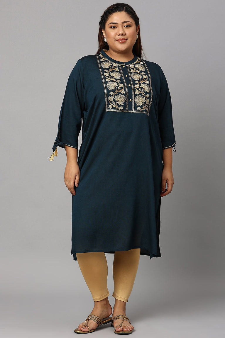 Blue Yarn-Dyed Acrylic Charm Plus Size kurta