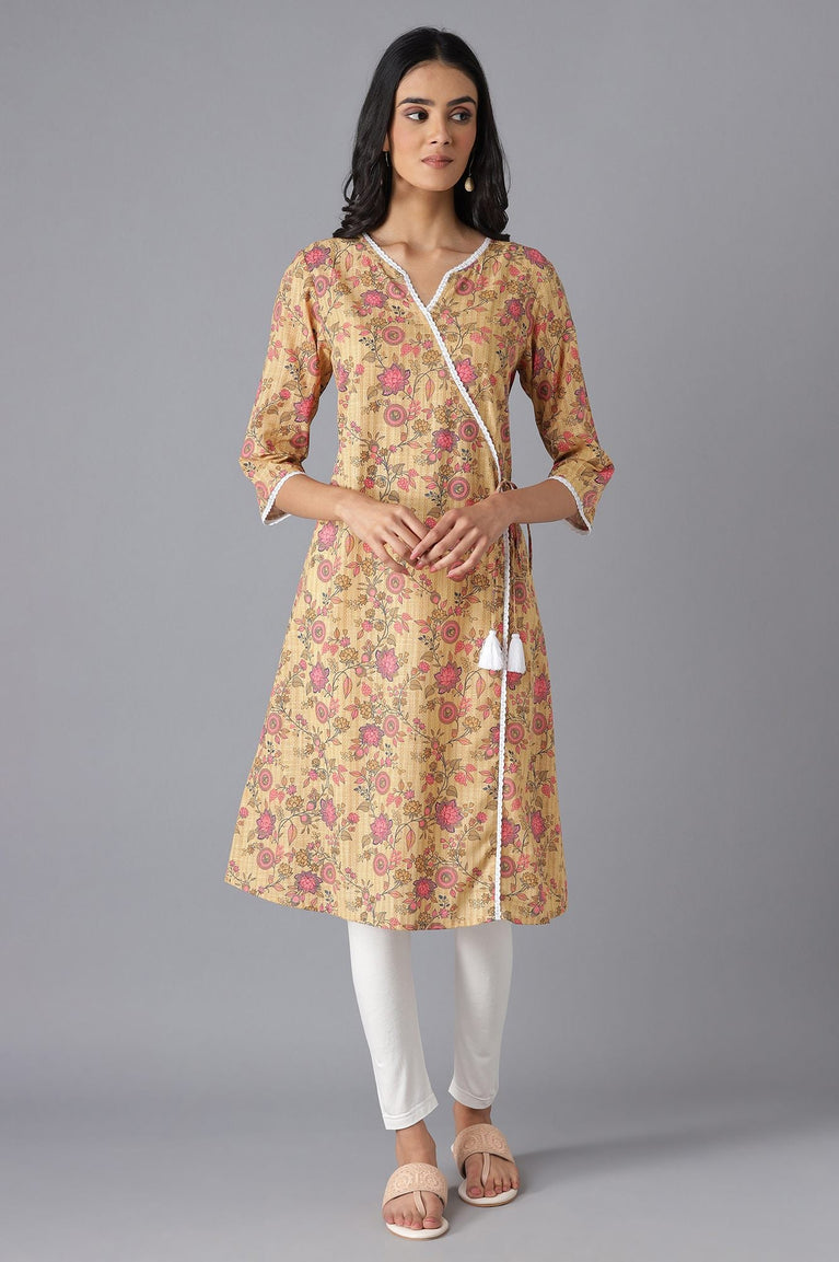 Beige Floral Printed with Zari work Straight Kota Kurta