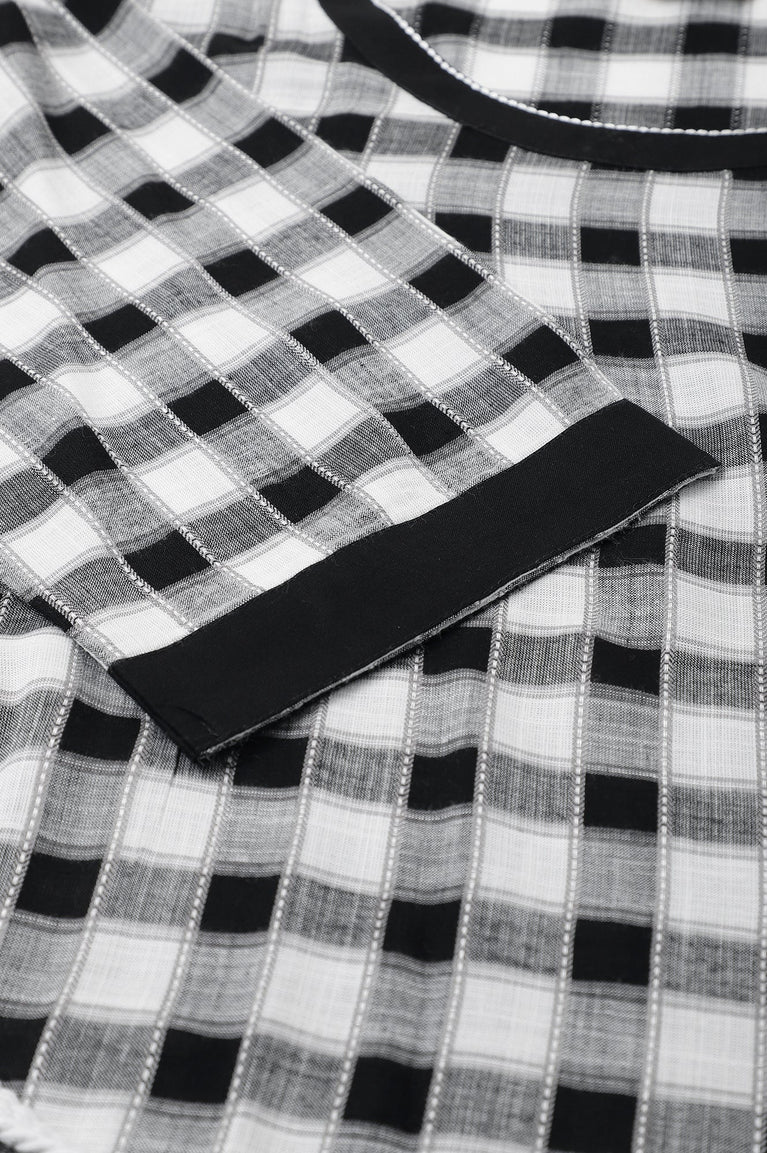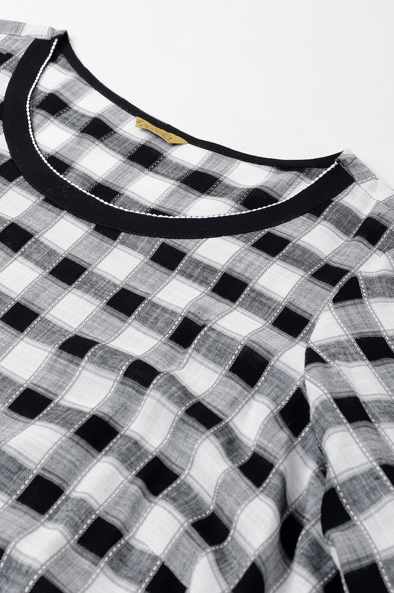 Crafted In Soft And Breathable Dobby, This Modern Checkered A-Line kurta With A Belt At Waist For Cinching Is Definitely A Go-To Choice. This Ensemble Can Be Paired With A Tonal Black Cropped Tights.