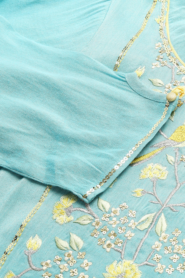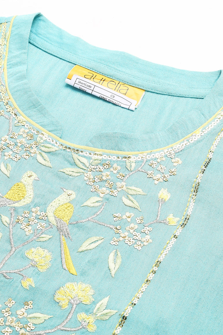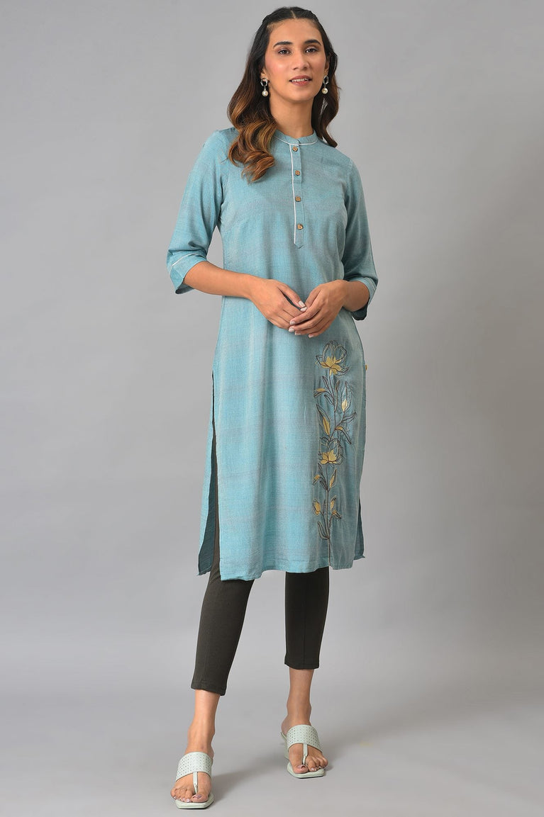 Crafted In Smooth And Breathable Cotton Dobby, This kurta Is Both Classic And Modern Aplenty. In Attactive Teal Colour, It Boasts An Unconventionally Placed Embroidery And A Sophisticated Silhouette.