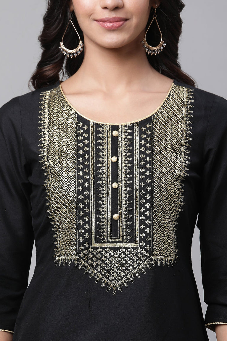 Amp up your style with this embroidered kurta. This kurta with gold embroidery and sequins is a much needed piece for your festive occasion. Its round neckline is accentuated with golden piping to enhance the look. Sequins in embroidery creates a glittering effect, making it more appropriate for a festive occasion.