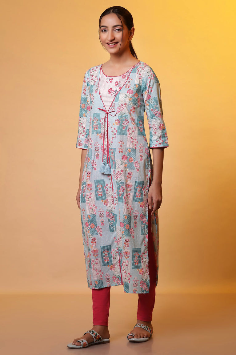Discover the perfect blend of style and comfort with this stunning blue kurta from Aurelia. Crafted from pure cotton, this knee-length piece features a round neckline and three-quarter sleeves, making it ideal for casual outings. The woven construction technique ensures durability, while the A-line silhouette flatters various body types. A subtle slit adds a touch of elegance to this fusion-inspired garment. The digital print enhances its contemporary appeal, making it a versatile addition to your wardrobe. Suitable for women who appreciate both tradition and modernity, this kurta is a testament to Aurelia's commitment to quality and style. The 100% cotton composition guarantees breathability and comfort, perfect for long wear during casual occasions. Embrace the fusion of traditional and modern elements with this exquisite Aurelia kurta.