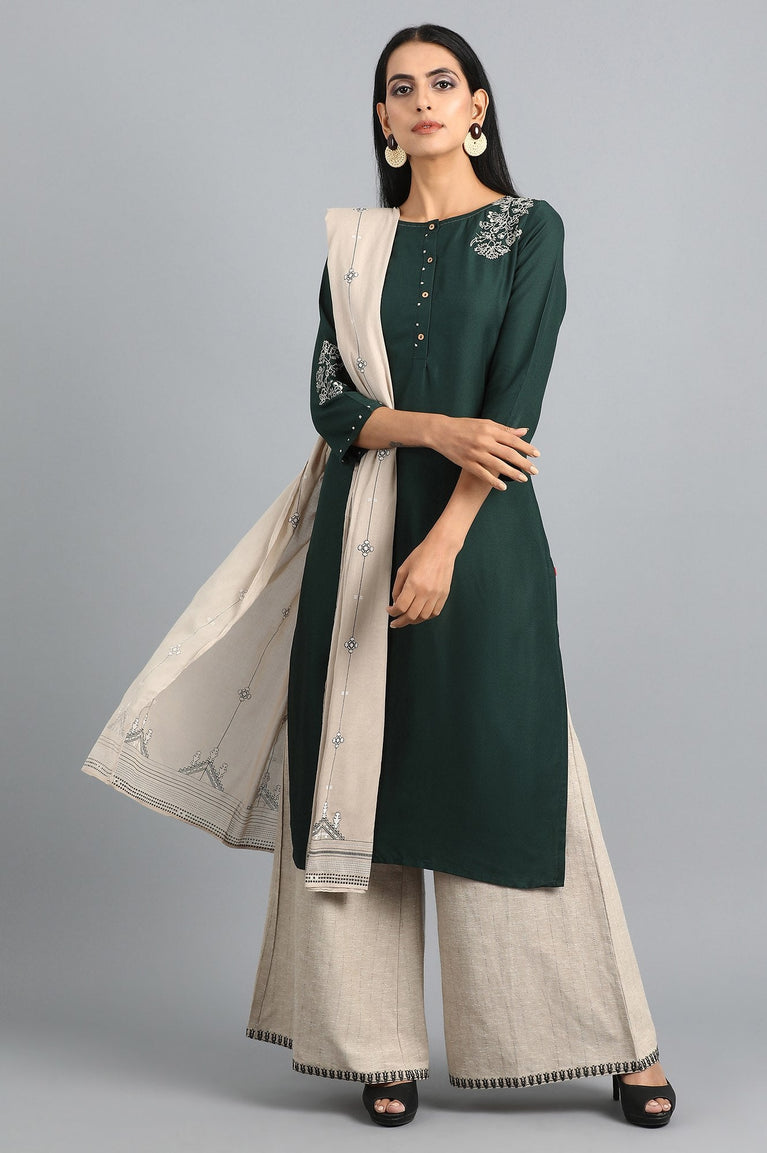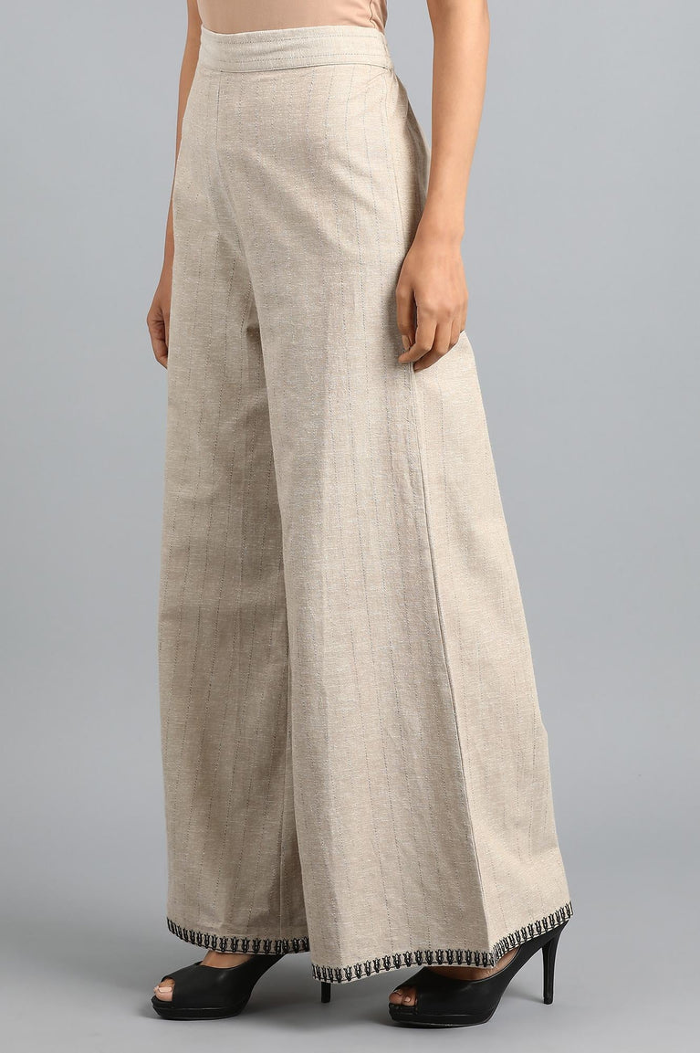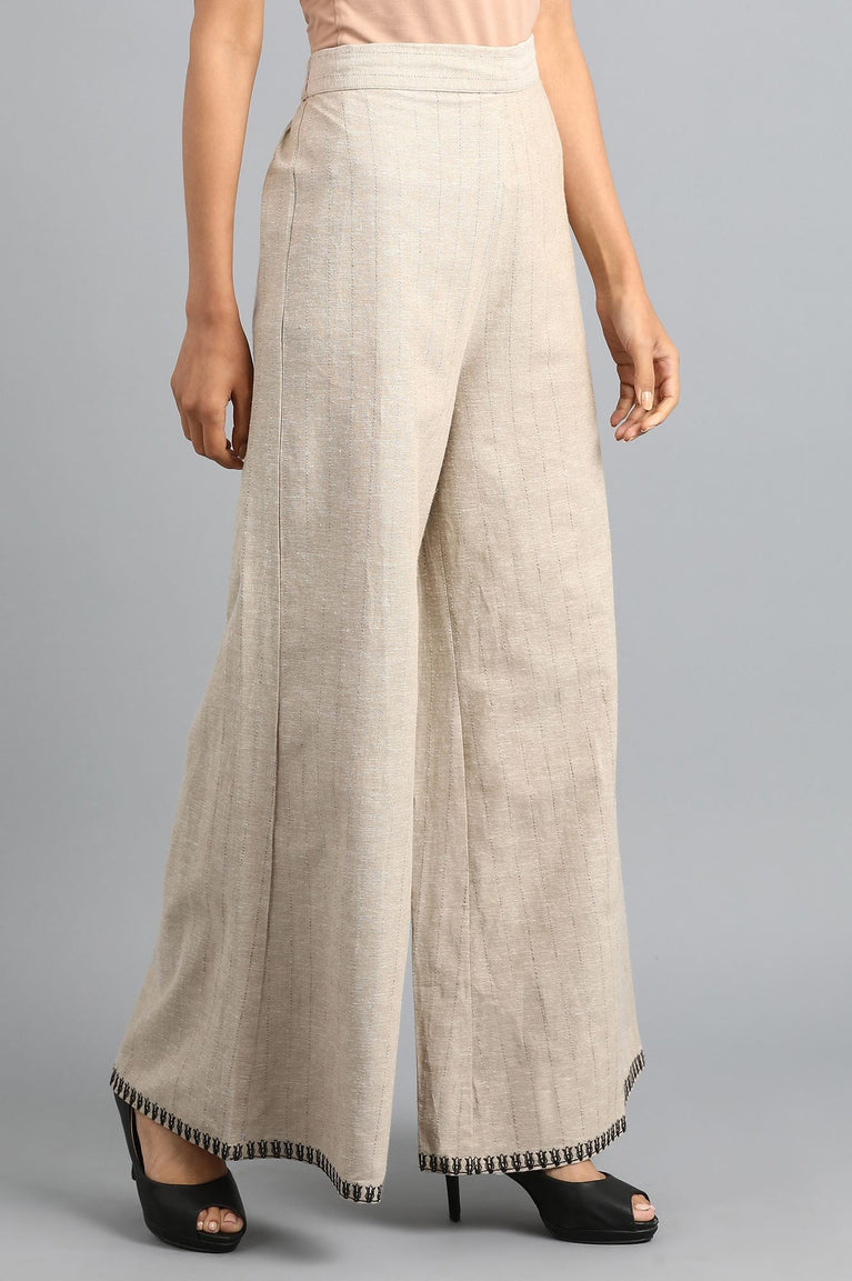 Beige yarn-dyed full sleeve jacket with button placket on the front along with two pocket detail.